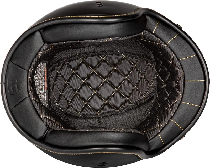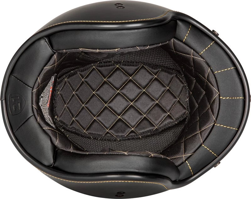 The .38 helmet from Highway 21 is the perfect no nonsense, three quarter helmet for your ride. DOT approved and crafted from lightweight fiberglass, the .38 features a removable quilted comfort liner, a 3 snap configuration for visor or shields, and a padded strap and D ring chin attachment. Classic style and good looks are the hallmark of the .38 helmet from Highway 21.