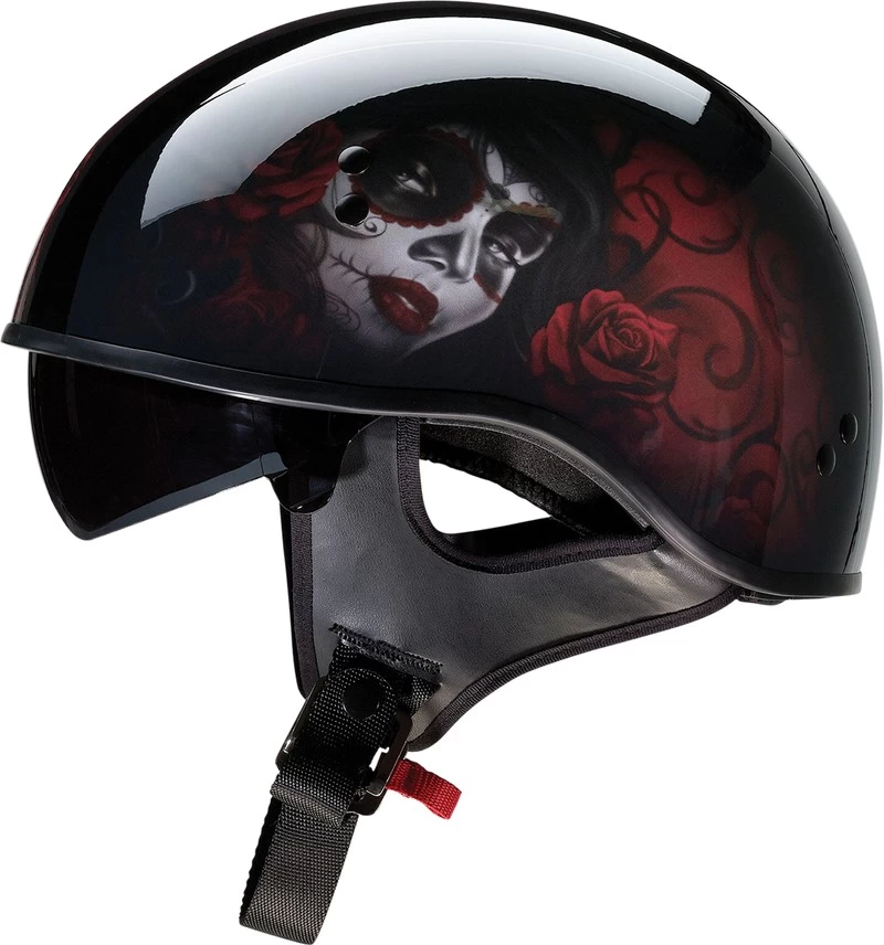 The Z1R Vagrant Red Catrina Helmet is a stylish and functional helmet designed to keep you safe and comfortable while riding. This helmet features a lightweight thermoplastic shell, a removable and washable liner, and a quick-release chin strap. The helmet also has a built-in sun visor and a removable breath deflector. The Z1R Vagrant Red Catrina Helmet is perfect for any rider looking for a stylish and comfortable helmet. Get yours today at Discount Moto Gear and save